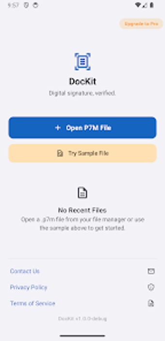 DocKit - P7M Viewer är en användarvänlig och säker applikation för Android som specialiserar sig på att öppna P7M-filer, vilka är digitalt signerade dokument som används i Italien och Europa för elektroniska fakturor och kontrakt. Med DocKit kan användaren enkelt visa originaldokumenten i olika format, verifiera signaturens giltighet och få information om den som undertecknat dokumentet, inklusive namn, organisation och skatte-ID. Applikationen utför även en komplett kryptografisk verifiering av den digitala signaturen, vilket garanterar att användaren får tillförlitlig information om dokumentets äkthet.